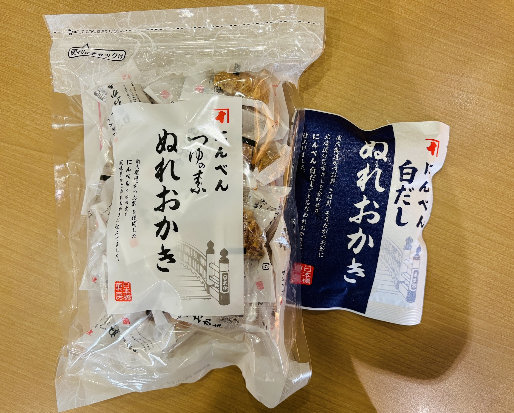 【渡辺祐です】おはようございます。冷えた朝です。鼻水が出ています。お聴き苦しいかもしれませんが、気候のせいなのでご勘弁ください。でもって三連休。成人の日絡みですので「大人」の話。あの頃とは変わっちまったことを送ってください。そんな本日のスタッフ用おめざは、きっと日本一の大人の街・日本橋でもとめてまいりました、あの出汁の[にんべん]さんの「ぬれおかき」です。もちろん出汁入りです。おお、これは「つゆの素」! 白だしもあります。電子レンジでいわゆるひとつのチンするとさらにおいしいようですよ。白だしの方が呑めるな(余談)。
